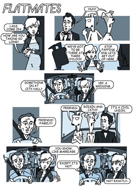 Tags: closing down, Dublin comic art, Flatmates comic, hairy, Harry, high court case, Irish comics, Lighthouse cinema, Maeve Clancy, Paul, Sean, shelly
