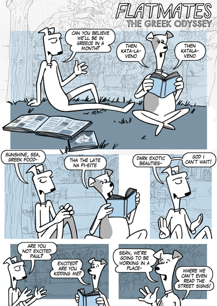 Tags: Flatmates comic, Greece, Irish webcomic, Maeve Clancy, Paul, Sean, summer, webcomic