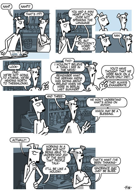 Tags: anarchy, flatmates the comic, Greece, Irish comic, Maeve Clancy, Paul, protests, riots, Sean, shelly, summer, webcomic