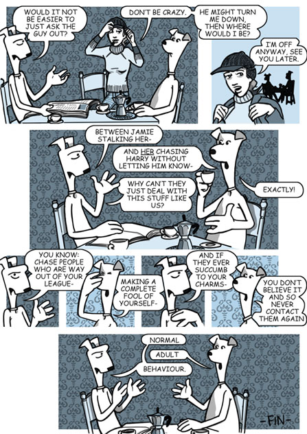 Tags:coffee, delivery man, Dublin, flatmates, Horse of Troy, Maeve Clancy, Paul, Sean, shelly, siege, subterfuge, wardrobe, webcomic