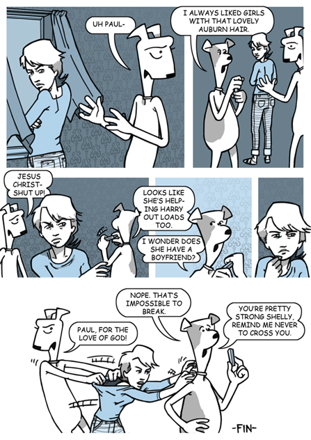 Tags:Dublin, flatmates, Harry, Jealousy, Karen, Maeve Clancy, Paul, Sean, shelly, tact, webcomic